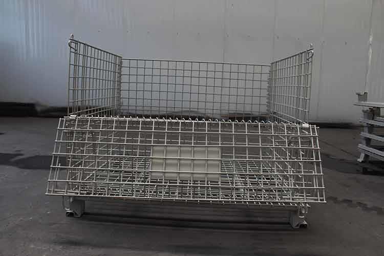 移動式美固籠外形輕巧,籠體除底框外都有鐵絲碰焊成的網(wǎng)片組合而成;網(wǎng)片與網(wǎng)片、網(wǎng)片與底框靠小連接件連接,可活動。且前后面可打開,在堆垛后能取物,堆垛時承重在側(cè)面的網(wǎng)片上。該移動式美固籠已完全具備可堆垛性、可折疊性及可搬運性,日益成為物流流通的一種重要物流容器。
