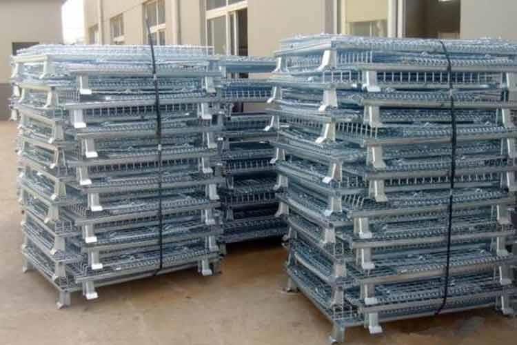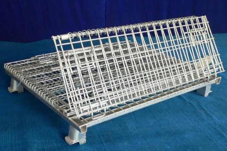 可折疊蝴蝶籠的主要原材料是高線拉成的鋼絲,一般絲徑是5mm,6mm,6.4mm。網(wǎng)片焊接的網(wǎng)目間距一般為50×100,100×100,50×50。折疊式倉庫籠采用U型鋼焊接而成,U型鋼是冷軋帶鋼軋機(jī)軋制而成,底部四角采用沖壓件一次沖制而成。
