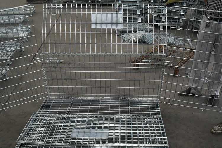 倉儲籠的主要原材料是高線拉成的鋼絲,一般絲徑是5mm,6mm,6.4mm。網(wǎng)片焊接的網(wǎng)目間距一般為50×100,100×100,50×50。倉儲籠底部采用U型鋼焊接而成,U型鋼是冷軋帶鋼軋機(jī)軋制而成,底部四角采用沖壓件一次沖制而成。倉儲籠采用Q195高線作為原材料,經(jīng)冷拔成型材。再通過碰焊形成半成品網(wǎng)片。在制作成網(wǎng)片后,可采用鍍鋅或噴塑進(jìn)行表面處理(倉儲籠大多數(shù)采用鍍鋅處理),表面處理完畢后就可以進(jìn)行組裝,即可制作成成品。